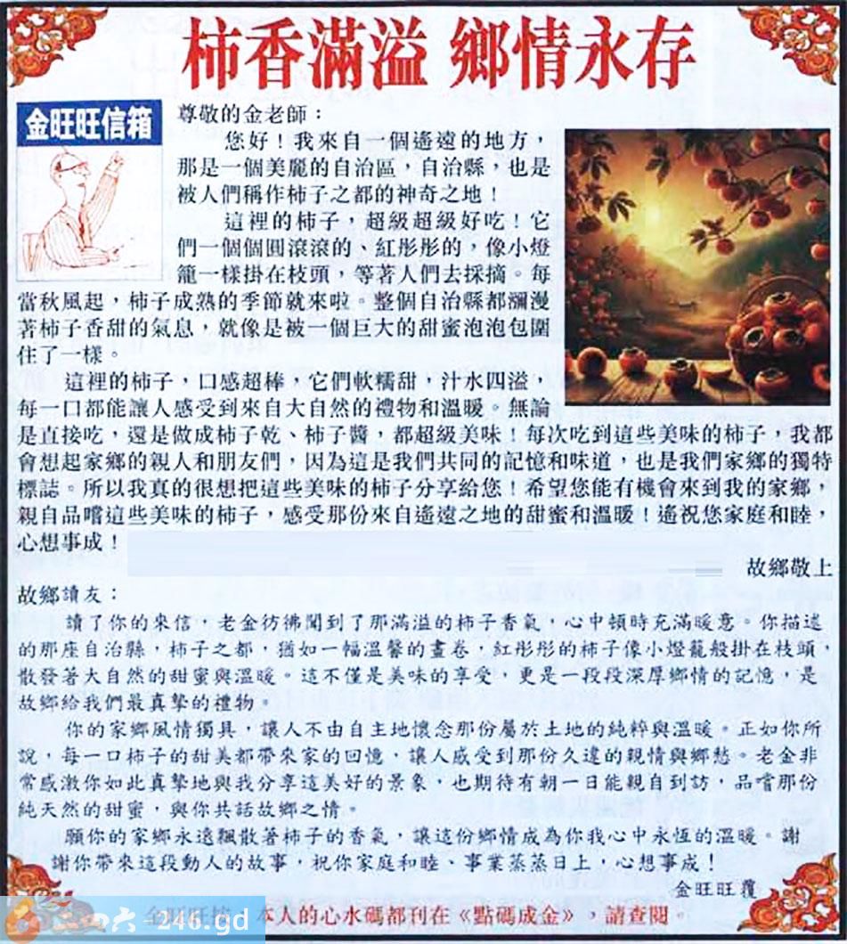 078期:金旺旺信箱彩民推荐→→《柿香滿溢 鄉情永存》