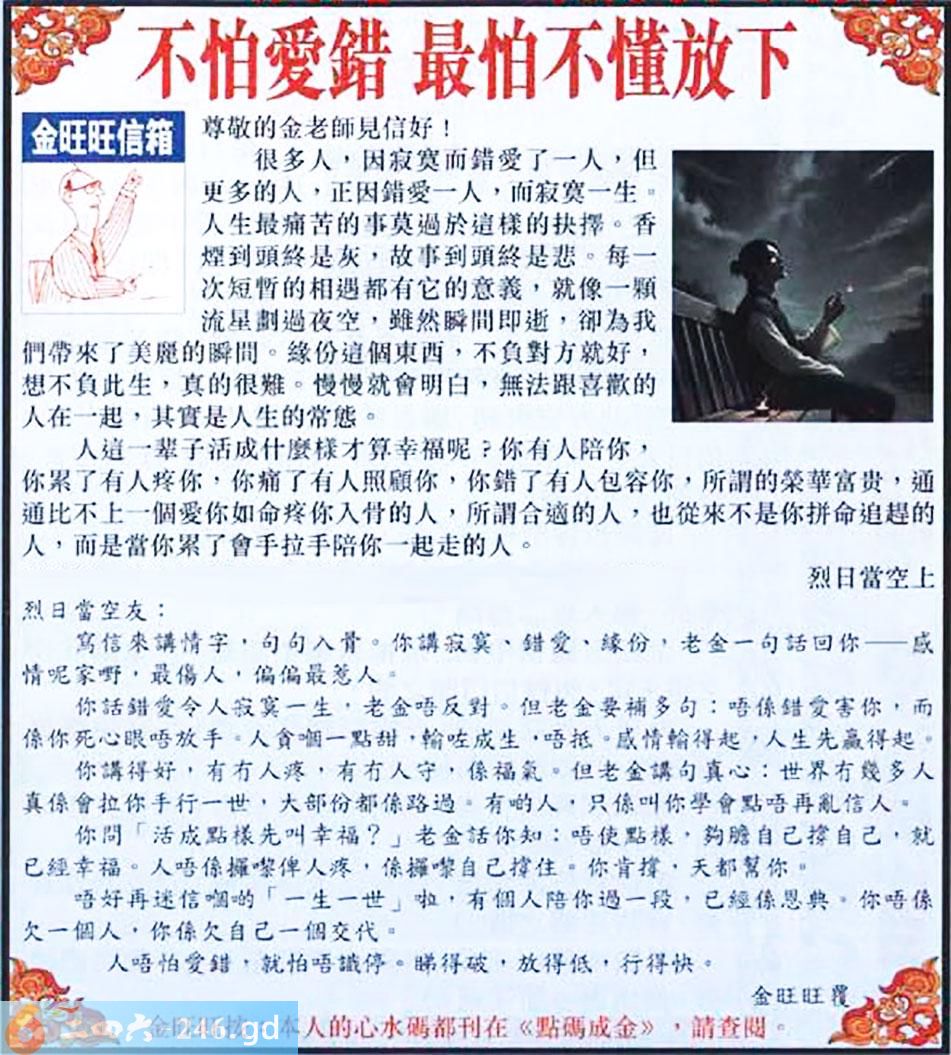 085期:金旺旺信箱彩民推荐→→《不怕愛錯 最怕不懂放下》