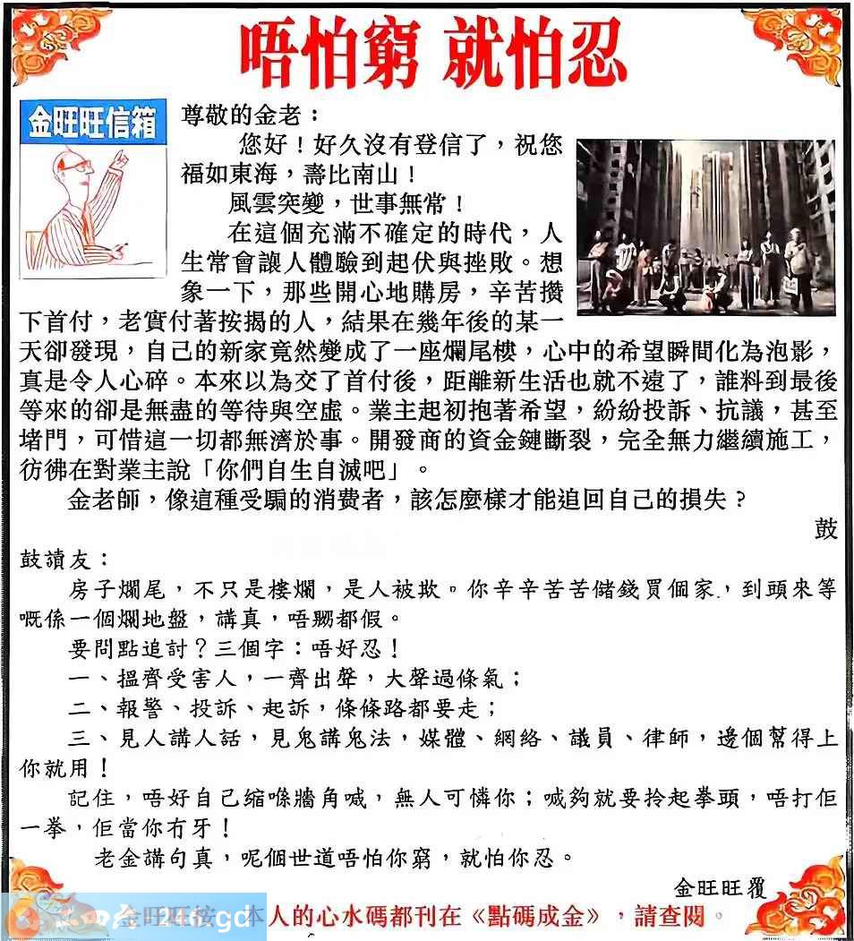2025101期101期:金旺旺信箱彩民推荐→→《唔怕窮 就怕忍》