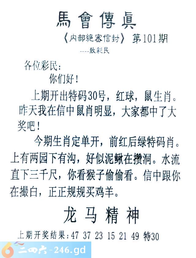 101期:首发推荐:≮馬會傳眞≯→(香港正版)