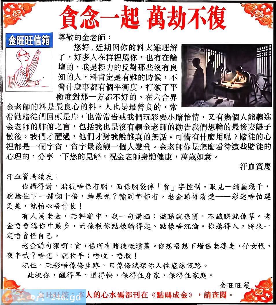 102期:金旺旺信箱彩民推荐→→《貪念一起 萬劫不復》