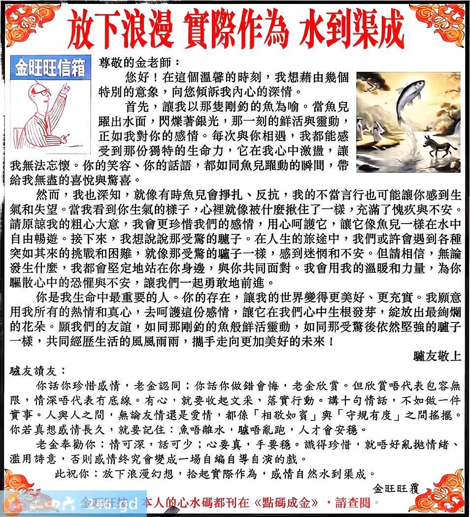 103期:金旺旺信箱彩民推荐→→《放下浪漫 實際作為 水到渠成》