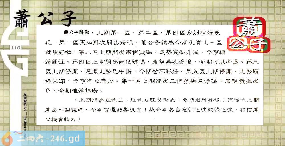 2025110期110期:彩民推荐〖貼信讀者論壇〗
