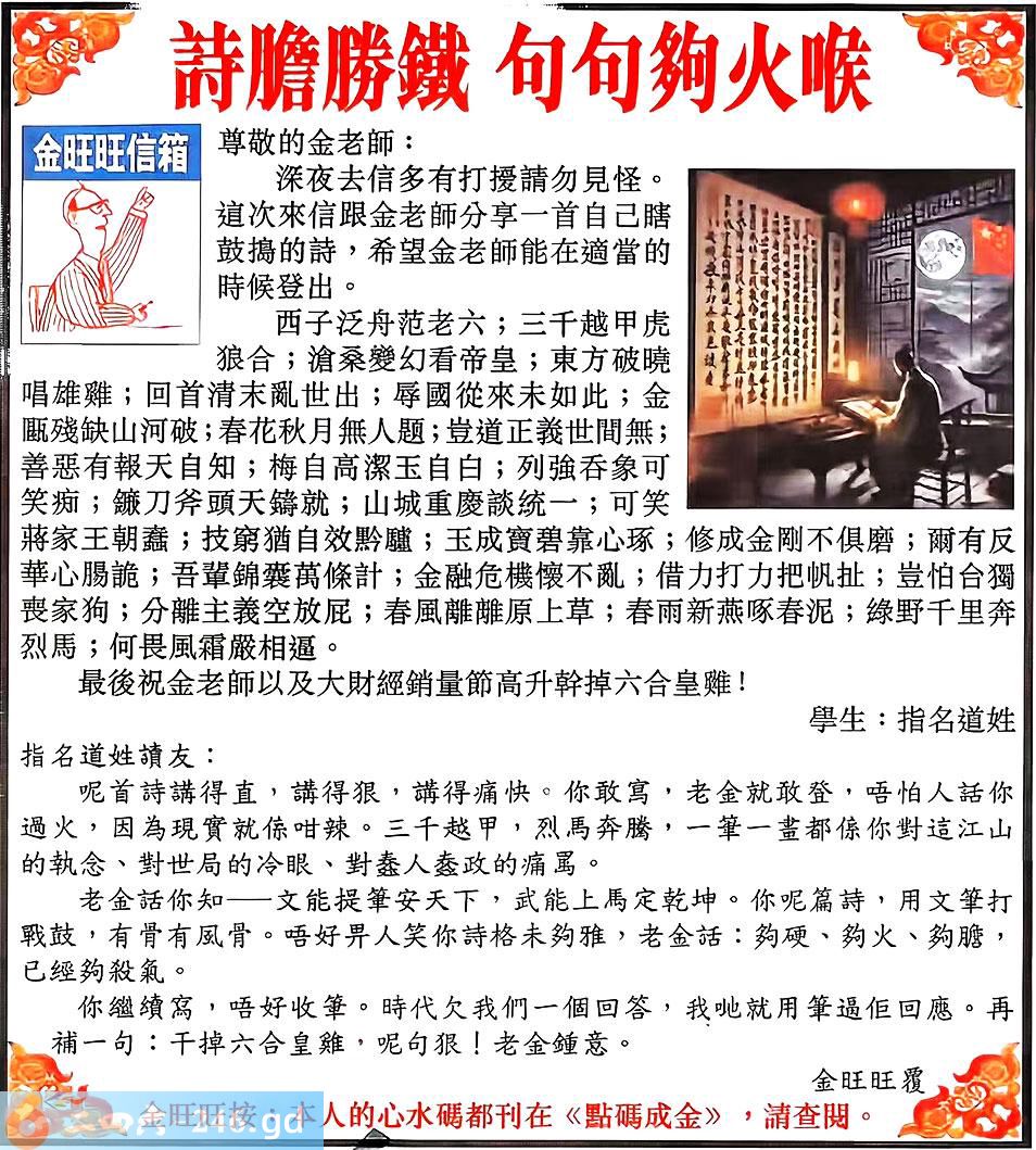 111期:金旺旺信箱彩民推荐→→《詩膽勝鐵 句句夠火候》