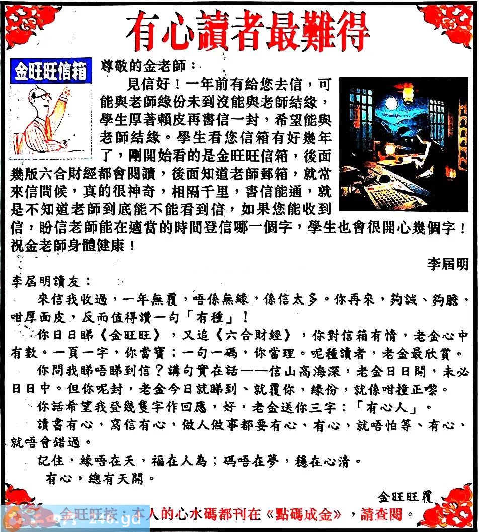 2025117期117期:金旺旺信箱彩民推荐→→《有心讀者最難得》