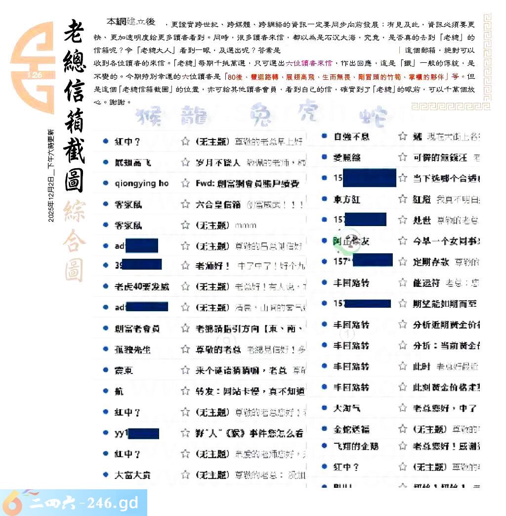 126期:六合皇金句/老总论码/萧公子/林大师/五行夺码/老总信箱截图