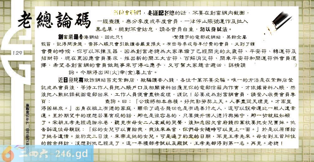 129期:六合皇金句/老总论码/萧公子/林大师/五行夺码/老总信箱截图