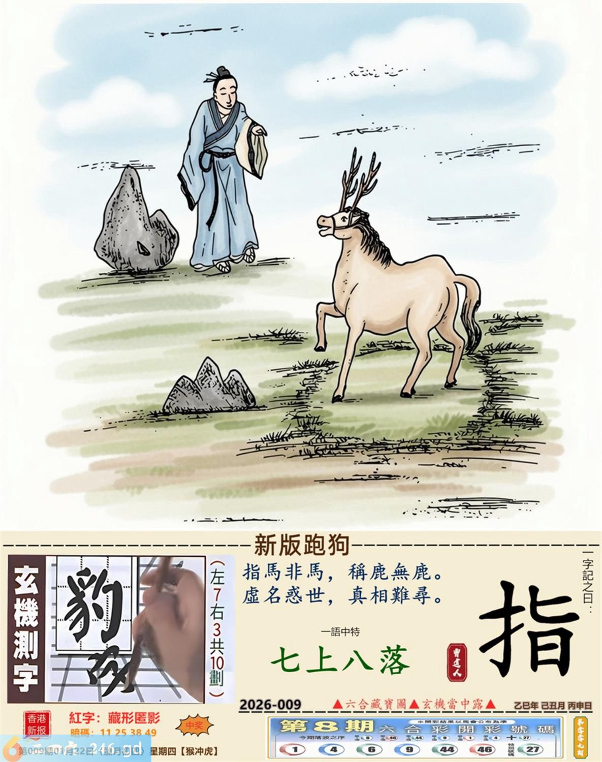 2026年1月22日009期虎(庚寅)(山下火) 009期:老版跑狗玄機一字記之曰:【心】 詩云:亂我心者不需要知我心者有多少 狂蜂浪蝶,不堪其擾,亂我心者不需要; 真正情人,蹤寂音杳,知我心者有多少。 玄機測字:《鎔》 密圖詩:榮華富貴享不盡 《記》:姑息養奸翻賊船 特碼大小單雙句:特碼不是凡夫采 今期必中:劉備 009期:特碼歇后語 禾苗怕蝼蛄-----一物降一物 009期正版四字梅花诗:焉知非福。 009期火车头:烧伤龙。诗:马死蛇伤,鸡猪伪装寻主生。 009期香港第一手欲钱料:二。 009期曾道人说:“三星?” 009期另版四字梅花诗:变出中间。 009期香港第一手欲钱料:欲钱看一力金毛遍全身。 009期曾道人说:“女人二十最喜欢得到什么东西”? 009期:二字經:超強 009期:八哥是特码 009期:智力金壤;凿壁偷光 009期:信箱紅字:【藏形匿影】 009期:【暗碼:11-25-38-49】 009期:一語中特:【七上八落】 發財玄機圖:聲威震天電閃雷動圖中明龍紅綠 009期:藏寳圖 新:吊屈谁知特怆神 老:小男供饵妇搓丝 禁:猴禁:4尾玄機字《醋》 2026年009期【生活幽默】版 〖你想過富裕的生活嗎〗 科恩是醫學院的學生,他想學心臟外科,又拿不定主意,于是去請教奥本教授。奥本教授問他:"小伙子,你想過富裕的生活嗎?" "當然!" "那你應當學牙科。""爲什呢?" "你想想,人的心臟祗有一個,而牙齒却有二三十颗。"