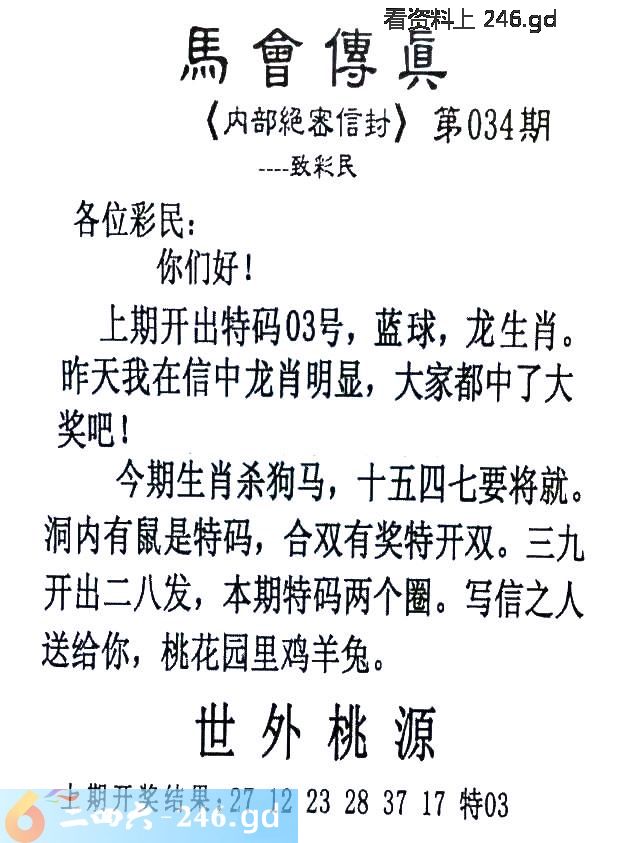 034期:首发推荐:≮馬會傳眞≯→(香港正版)