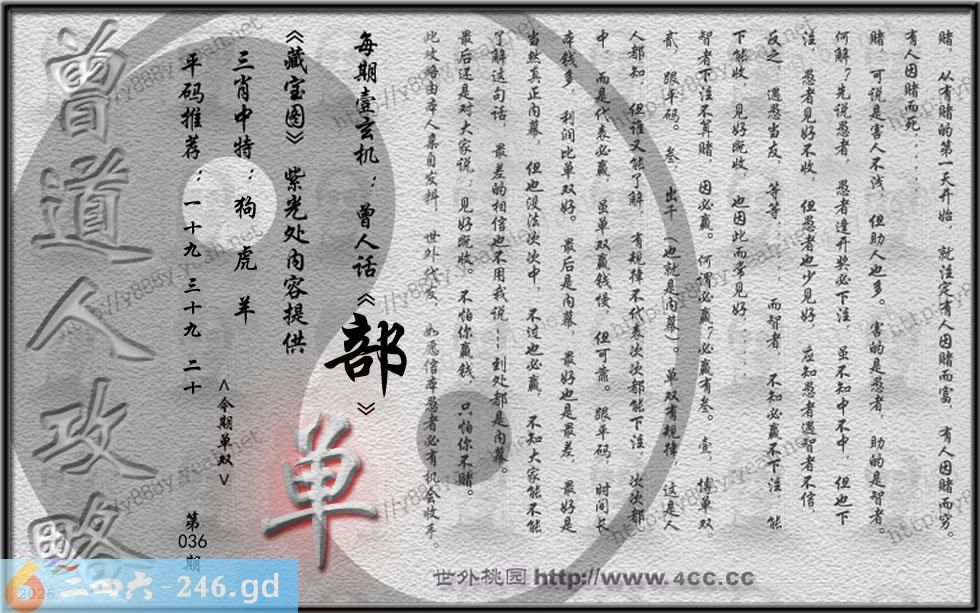 036期藏寶圖 新:西第将军成底事 老:剑花莲光出匣 禁:龙禁:2尾玄機字:《部》