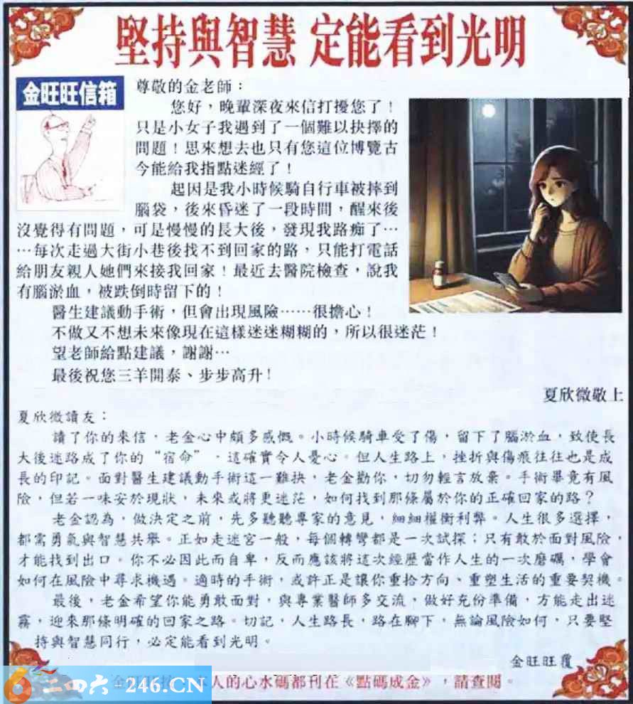 2025038期038期:金旺旺信箱彩民推荐→→《堅持與智慧 定能看到光明》